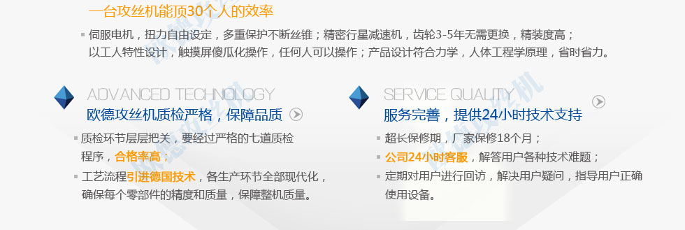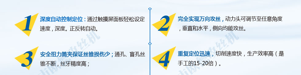 質(zhì)量求生存的方針,我們真誠歡迎新老客戶選用我公司產(chǎn)品。公司注冊資金1000萬元。公司以可靠的電動攻絲機(jī)質(zhì)量和合理的價位打動眾多消費者。公司創(chuàng)造了一流的售后服務(wù)。我公司一如既往地堅持數(shù)控攻絲機(jī)服務(wù)第一的宗旨。我公司以只有最好的精神指導(dǎo)各項工作大力塑造品牌。我公司新廠區(qū)擁有齊全的現(xiàn)代化生產(chǎn)設(shè)備。充分利用區(qū)域和行業(yè)優(yōu)勢。精誠服務(wù)贏信譽是我們的鋼筋上絲機(jī)質(zhì)量方針。進(jìn)取精神是企業(yè)能與時俱進(jìn)的動力和發(fā)展的源泉。